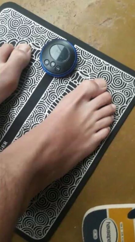 Unfold the mat, power it on, choose a mode, place your feet, and let the EMS pulses work.